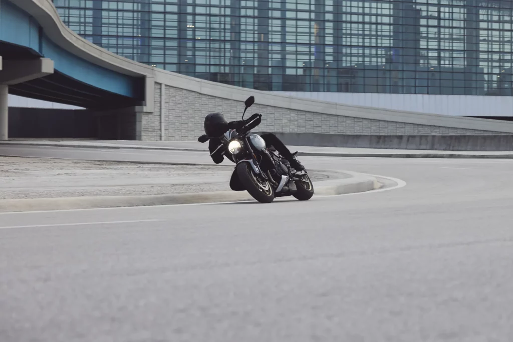 Sur le plan du freinage, la Trident 800 utilise deux disques de 310 mm flottants pincés par des étriers radiaux à 4 pistons à l’avant, avec un système ABS à détection d’inclinaison. À l’arrière, le disque fixe de 220 mm est équipé d’un étrier à simple piston avec ABS. Les roues sont en alliage d’aluminium moulé à 5 rayons, en 17 x 3,5 pouces à l’avant et 17 x 5,5 pouces à l’arrière, montées respectivement avec des pneus 120/70 R17 et 180/55 R17.
